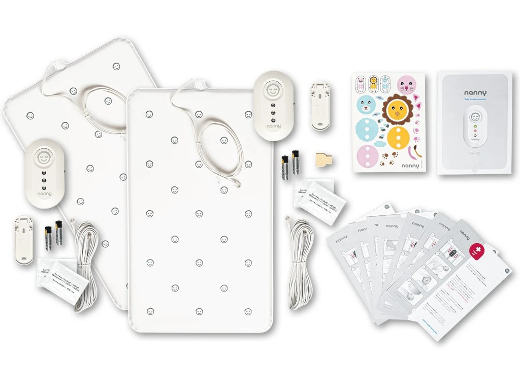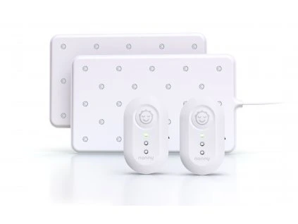 Este pack inclui dois monitores respiratórios Nanny, cada um com o respetivo sensor.